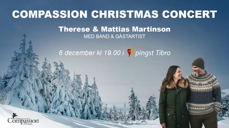Detta år så kommer vi gästas av Therese & Mattias Martinsson med band i det de kallar "Compassion Christmas Concert"! Så boka in lördagen den 6 december klockan 19.00 i Tibro Pingstkyrka, detta vill ni inte missa.