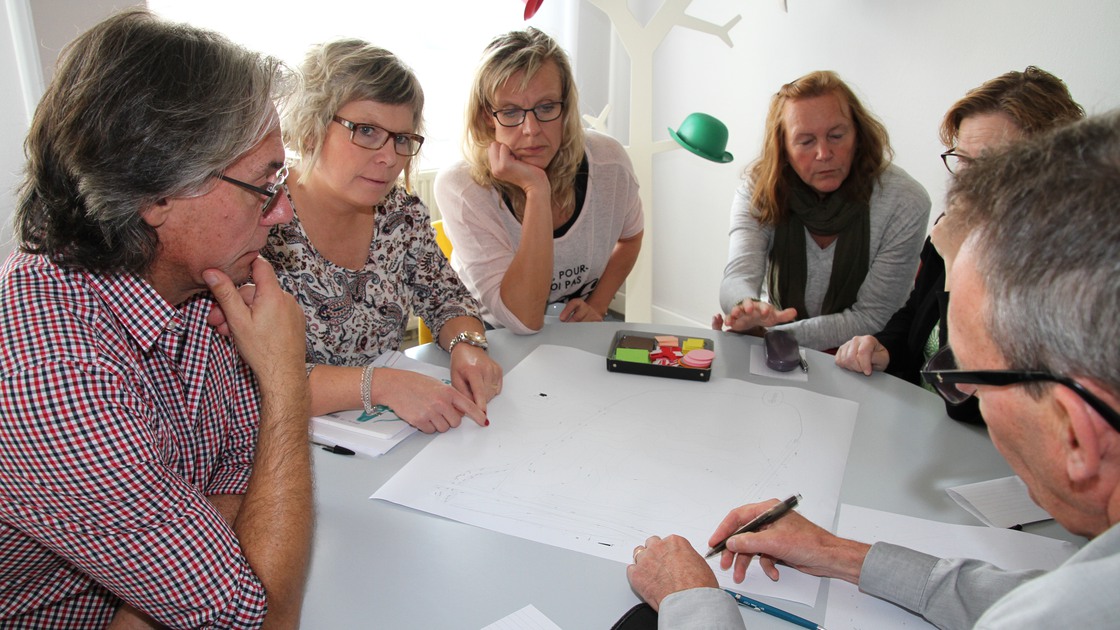 Under hösten genomfördes en hel serie med workshops där den berörda personalen både fick ta del av en inspirationsföreläsning med arkitekten Madeleine Nordenknekt och fick arbeta praktiskt i mindre grupper med utformningen av skolan, idrottshallen och utemiljön runt skolan.