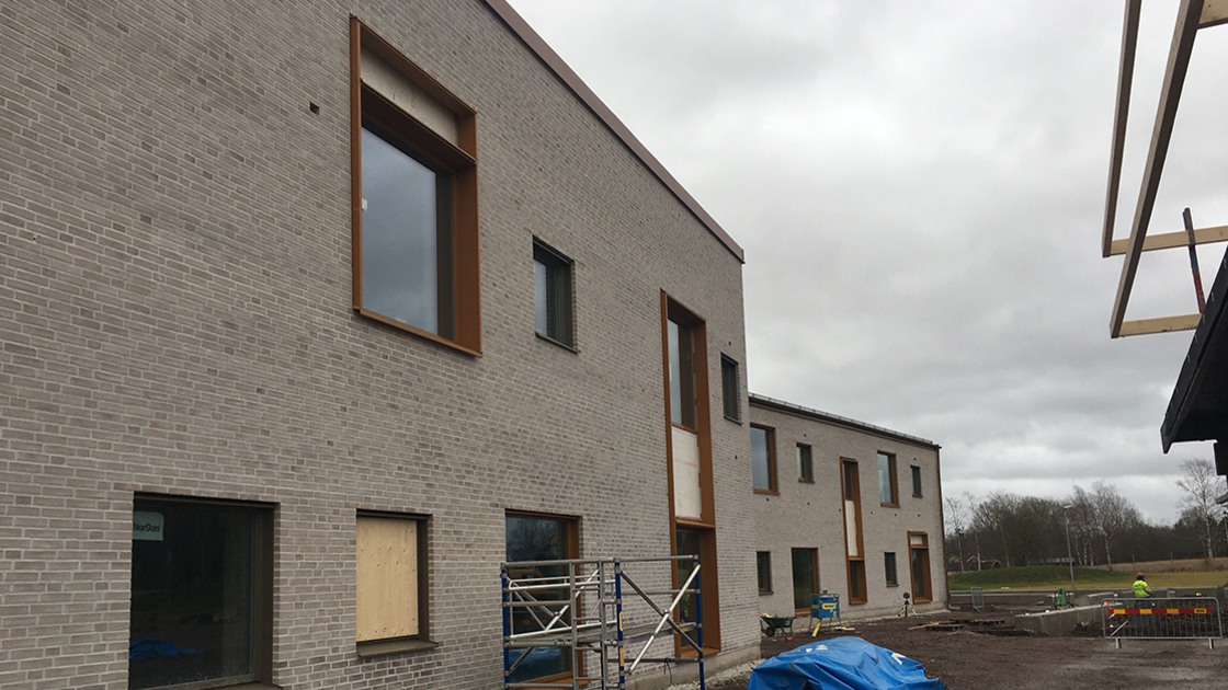 Bra flyt på stomresning och montering av ytterväggar på Baggeboskolan