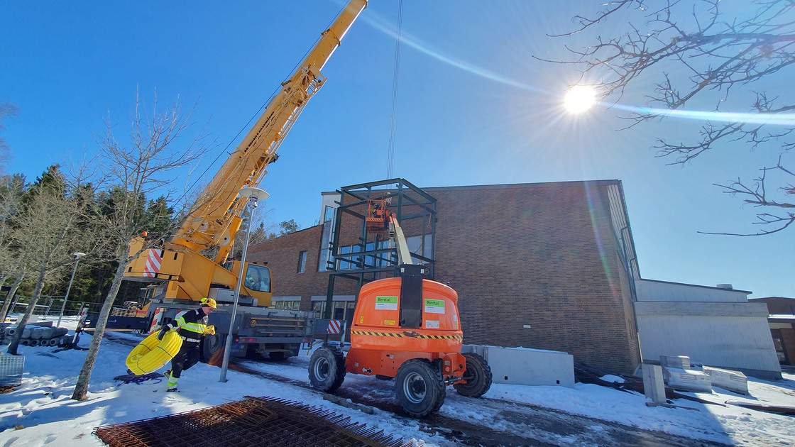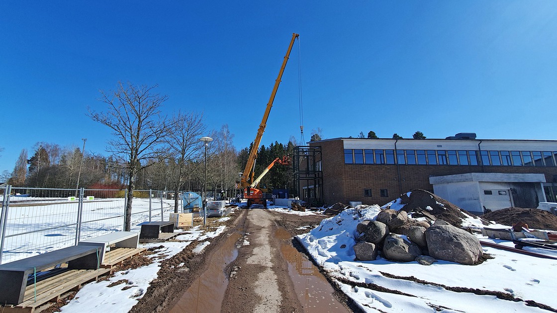 Arbetet med skolans huvudentré inleddes den 3 april 2023 med att en gjuten stålstomme sattes på plats. Den nya entrén var helt klar före semestern i juli samma år.