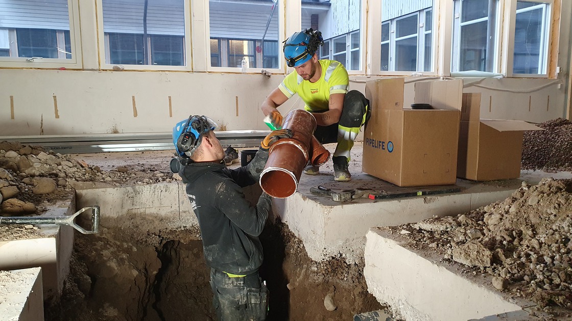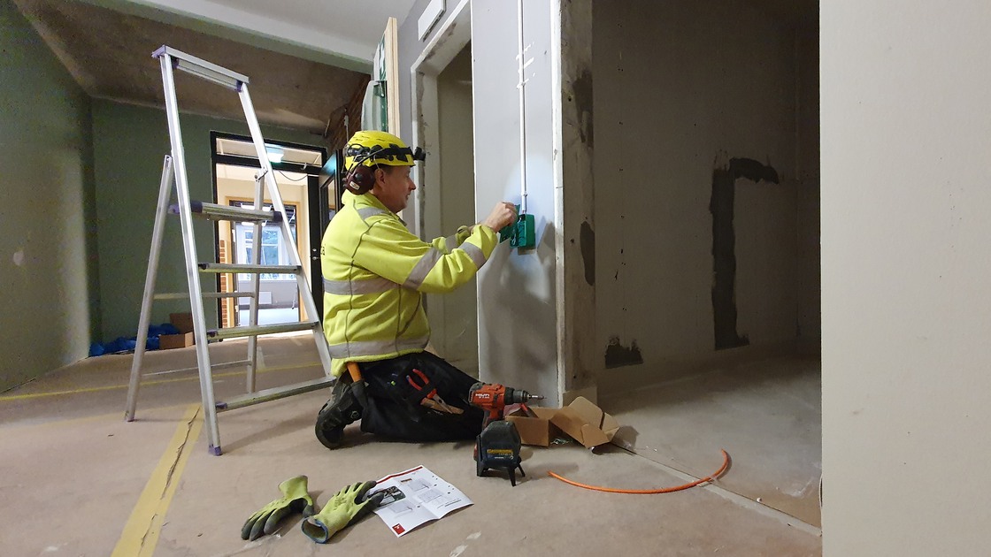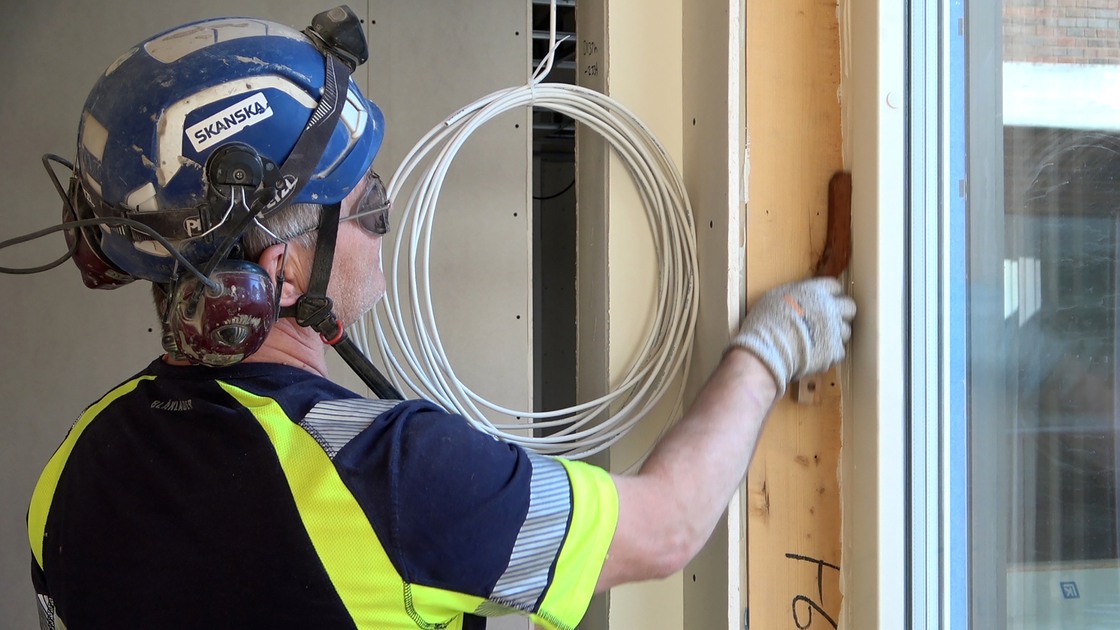 I december spacklades väggarna i etapp 4-delen samtidigt som ett ventilerat golv, som ska motverka framtida fuktproblem, sattes in och el- och VVS-installationer utfördes.