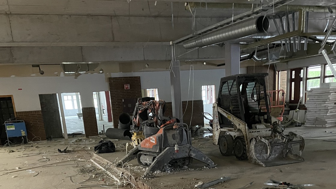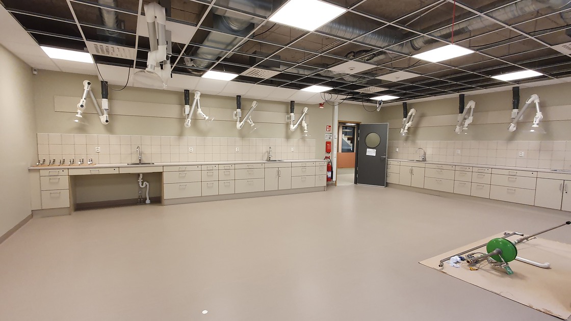 I slutet av februari 2022 år påbörjades arbetet med att riva innertaken på plan 2 där bland annat NO-salarna, som togs i bruk i januari 2023, är belägna.
