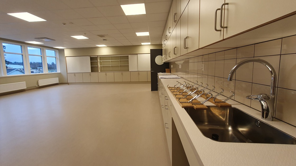 Rivningsarbetet i entréplanet avslutades i februari 2023. Arbetet med att sätta upp nya väggar i etapp 3, som omfattar lokaler för särskolan, resursenheten och elevhälsan samt rektorsexpeditionen och lärararbetsrum, var färdigt i mitten av september. Uppsättningen av nya väggar i etapp 4, som inrymmer bild- och slöjdateljéer, hemkunskapssalar, den nya fritidsgården och bibliotekets nya cafédel färdigställdes i december.