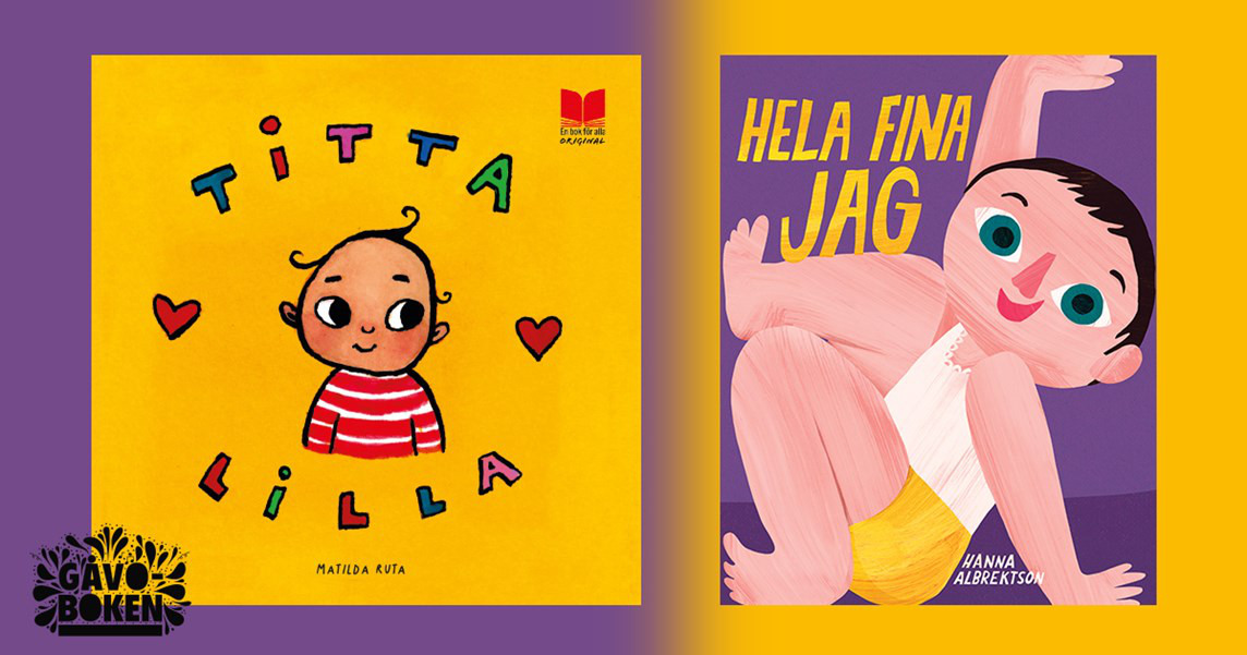 Familjen får välja mellan böckerna Hela fina jag (2019) av Hanna Albrektson och Titta Lilla (2023) av Matilda Ruta.
