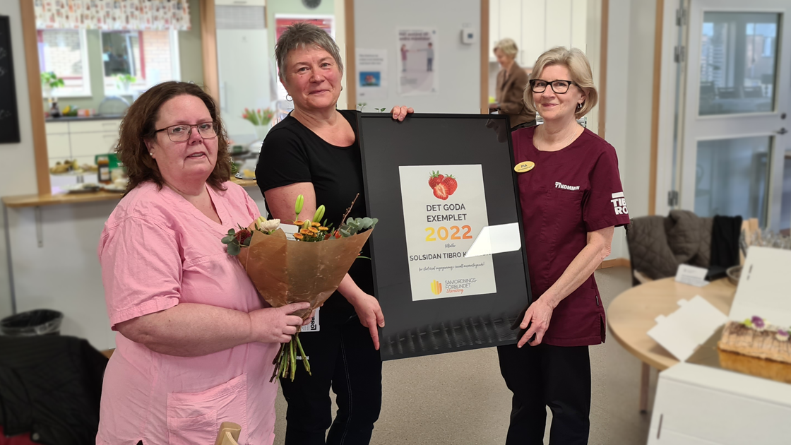 Personalen på Träffpunkt Solsidan överraskades på torsdagsmorgonen den 23 mars av Samordningsförbundet Skaraborg som utsett Solsidan till årets vinnare av utmärkelsen "Det goda exemplet". Priset delas ut för att personalen visat på ett stort engagemang för ett socialt ansvarstagande. Personalen rördes till tårar och det är väldigt ovanligt att priset tilldelas kommunala verksamheter.