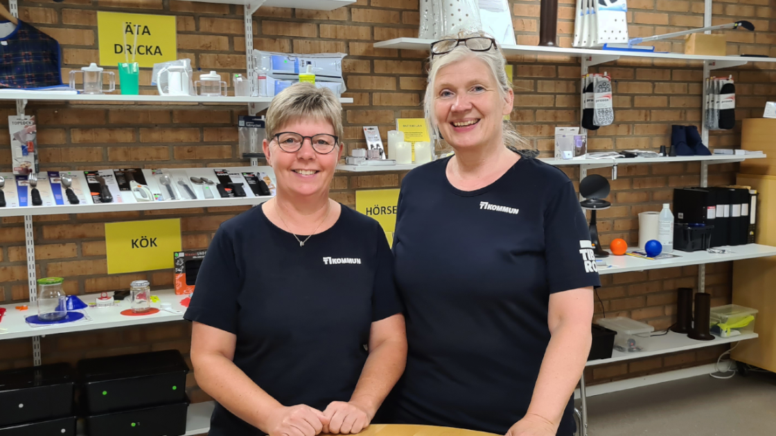 Var-Dags-Rum är ett visningsrum och butik med hjälpmedel som på olika sätt underlättar vardagslivet. Rummet bemannas av två rehabassistenter: Elinor Persson (vänster) och Carina Anttila (höger).